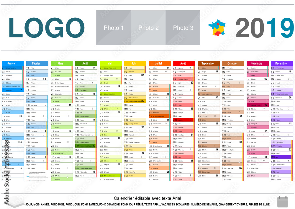 Format A3 Vacances 2020 Officielles Calendrier 2019 Sur 12 Mois Modifiable Avec Texte Non Vectorises Calendrier Scolaire Complet Numeros D Urgence Lune Semaine Stock Vector Adobe Stock
